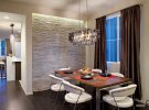 На компактних кухнях ціниться кожен зайвий метр. Тому замість габаритного столу багато хто вибирає барну стійку. Вона виглядає стильно та стримано. Слугує елементом зонування, розбиваючи простір на кілька зон. В одній готують їжу, а в іншій подають.