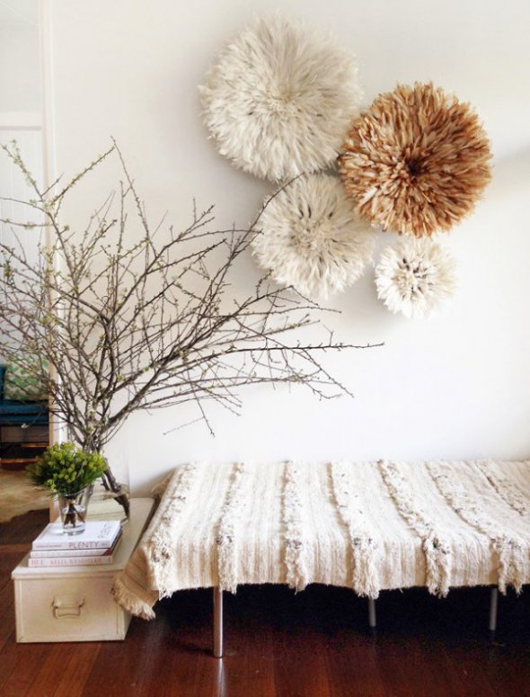 2. Пір'яні елементи. Тут важливо не помилитися з вибором, адже пір'я в інтер'єрі може виглядати як гламурно, так і доволі безглуздо. Обрана композиція має бути вишуканою й оригінальною.