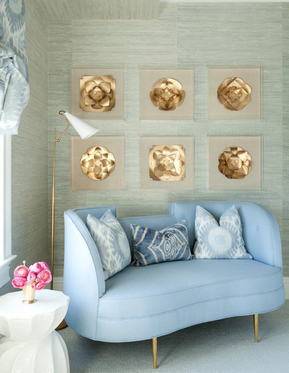 3. Золоті акценти. Цього року колір золота й латуні в інтер'єрі є гарячим трендом. Можна перефарбувати в такі тони ніжки дивана, крісел, стільців, торшеру чи будь-які інші дрібні предмети інтер'єру. Підійдуть також різноманітні скульптури й картини — головне, аби мали деталі золотого кольору. Особливої розкоші додадуть декоративні композиції, виготовлені з використанням золотої фольги.