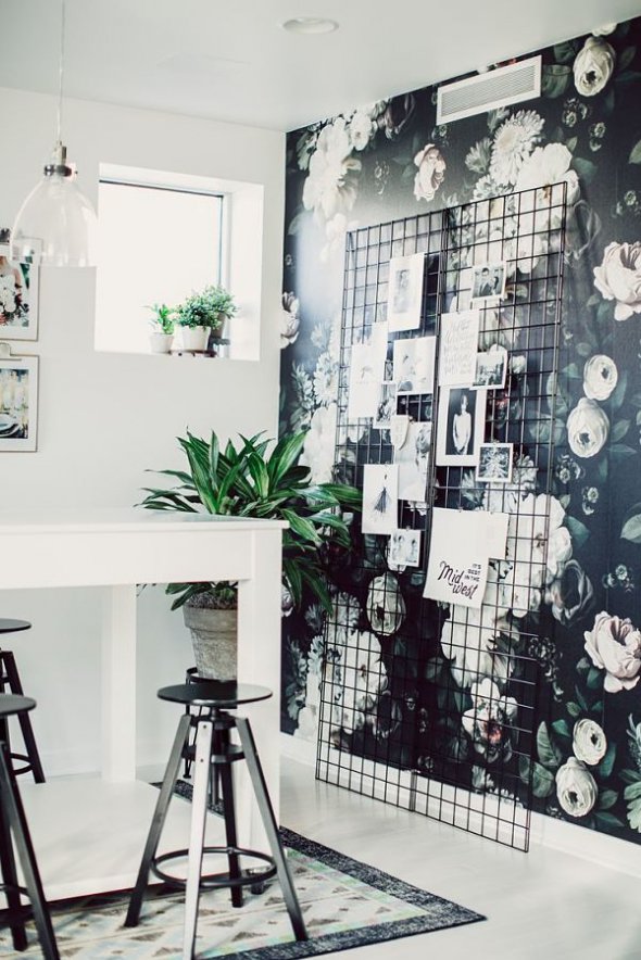 4. Реалістичні фотошпалери із квітковим принтом. Переклеювати геть усі стіни в кімнаті не потрібно — досить зробити акцент на одній.
