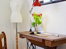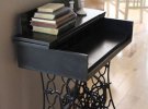 Із старої швейної машинки можна зробити меблі. Це може бути невеликий туалетний столик або обідній стіл для всієї сім'ї. У ньому замість ніжок використовують металеву підставку із швейної машинки.