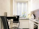 Не менш важливим є освітлення. Крім центрального світла, варто ввести точкове освітлення, наприклад, над кухонною стільницею. Стельову люстру найкраще розташувати над обідньою зоною, робочу зону - забезпечити точковим підсвічуванням. Стелю можна також повісити, виділивши пару зон кухні, але важливо не розташовувати їх в лінію, щоб не посилити "тунельний" вид кухні.