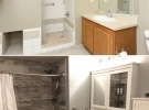 Звичайна ванна кімната перетворилася в дизайнерське творіння з двома раковинами. Меблі замінили на більш компактні, а велику раковину перетворили в подвійну.