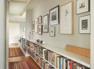 Вузький коридор є ідеальним місцем для облаштування бібліотеки. Головне правило — встановити книжкові полички лише з одного боку, лишивши іншу стіну вільною. Це дозволить запобігти перевантаженню простору. Поруч із книгами розмістити можна фотографії й різні декоративні предмети.