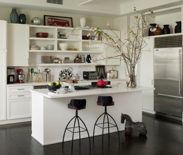 4. Наявність відкритих поличок. На них можна виставляти посуд, різноманітні коробки, банки з крупами, вази або горщики з рослинами, усілякі аксесуари.