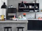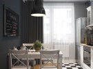 Світильник стає родзинкою, якщо пофарбований у чорний колір. Не менш цікавим рішеням є повісити світильник схожий на свічник, люстру з металевим абажуром або просто лампочки на дроті.