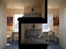 Завдяки розкладним меблям і вбудованим конструкціям вдалося перетворити на комфортну оселю нежиле приміщення площею 17 кв метрів. У ньому вмістили вітальню, ванну кімнату, кухню й спальню.