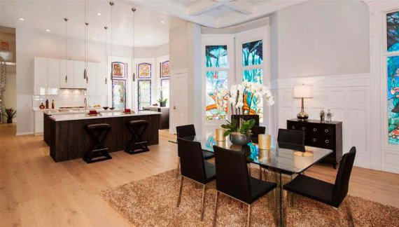 Триповерховий будинок має житлову площу майже 650 кв. м. Там є вітальня, двоповерхова кухня, винний льох, п'ять спалень і сім ванних кімнат.