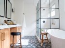 "Я хотіла, щоб вона була сучасною, але не занадто. Тому тумби обрала дерев'яні, поставила табурет. Душову кабіну взяла таку, що поєднує в собі індустріальний і рустикальний стилі", — каже топ-модель.