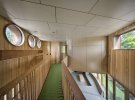 Вигнутий інтер'єр, обійнятий світлом від білих кольорів та дерев'яної обробки. Це створює атмосферу тепла, яке обіймає своїх мешканців.