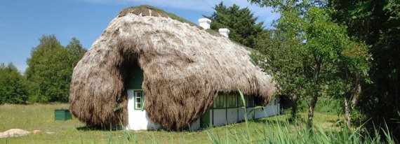У Данії на острові Лесе зробили унікальний будинок з дахом з водоростей.Вони заважили на 23 тонни.