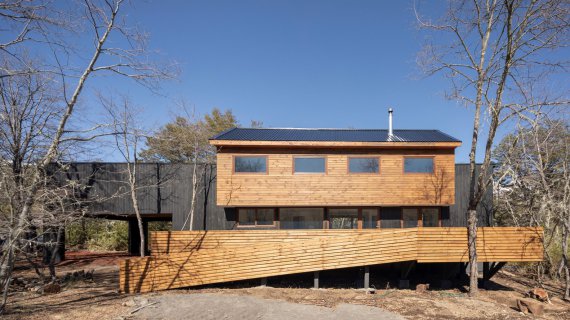 Жити можна в найнесподіваніших місцях. Наприклад, біля підніжжя чилійського вулкану Невадос-де-Чіллан. Так закінчили просторий будинок з яскраво вираженими кутами. Вони додають будівлі міцного характеру.