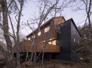 На передньому плані фасаду є широка і товста тераса. Весь проект розроблений на трьох рівнях, доступ до якого здійснюється через другий поверх. Перший залишили для побутових господарських цілей.