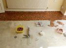 Метт рівномірно розподілив її по всій поверхні підлоги і залишив висихати на дві доби. Утворився прозорий шар, завдяки якому підлога стала міцною і глянцевою.