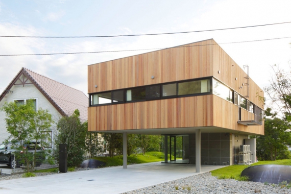 Японські архітектори придумали проект дому, жилі кімнати якого розташовані на висоті більше 4-ох метрів над землею. Попри вологість на березі водойми, у кімнатах сухо та затишно. Проект публікує homedsgn.