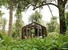 З двох сторін будинку є скляні стіни для кращого проникнення природного освітлення.