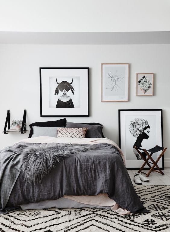 Сірий є ідеальним фоном для картин, фотографій і скульптур. Якщо застосувати контрастні відтінки цього кольору, стіни можна нічим не прикрашати: кімната все рівно стильно виглядатиме.