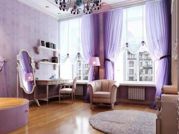 Неможливо створити чисто фіолетову кімнату. Необхідно яким-небудь способом відтіняти насичені і контрастні кольори. Це можна зробити за допомогою ніжних відтінків інших кольорів, які внесуть в приміщення більше світла.