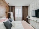 Щоб розділити спальню на дві смислові зони дерев'яними рейками, японськими шторами або стелажом. Елементи зонування у вигляді шпалер не тільки допоможуть розмежувати довгу спальню, але і урізноманітнюють інтер'єр, зроблять його затишним і оригінальним.