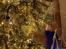 У цьому році оздоблення робили у золотих кольорах. На гілках ялиці розмістили блискучі соснові шишки і зірки, а на верхівці ангела. Серед інших прикрас замку - величезні банти з червоного оксамиту і мерехтлива підсвічування.