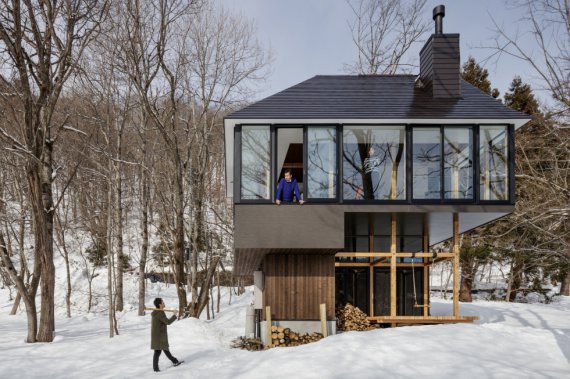 У японському місті Нагано збудували сучасний котедж зі стіною з панорамних вікон. Автором проекту стала токійська компанія Sugawaradaisuke. Розташували будинок в лісистому підніжжі гори на березі мальовничого озера.