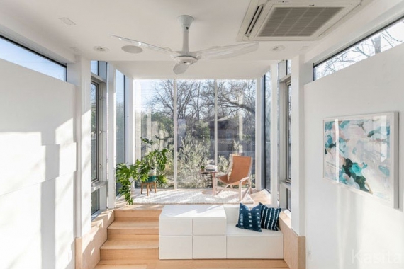 У будинку багато прихованих місць для зберігання, різних висувних ящиків і полиць, щоб мешканці могли відчувати себе максимально комфортно. Наприклад, прозорістю вікон керує спеціальний додаток для смартфонів, що аналізує ступінь освітленості.