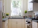 Кутове розташування. Дуже зручне планування з точки зору ергономіки робочого простору. Найпопулярніший варіант для кухонних приміщень з маленькою площею. Така розстановка звільняє місце для повноцінної обідньої зони.