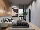 Спальня спроектована виключно для сну та якісного відпочинку, адже в ній немає нічого зайвого. Навіть без звичного TV. Але знайшлось місце для невеличкої гардеробної.
