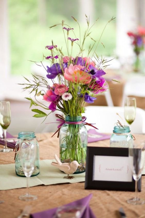 Для святкової вечірки або романтичної вечері, композиція з польових квітів і трав, стане прекрасним елементом в сервіровці столу
