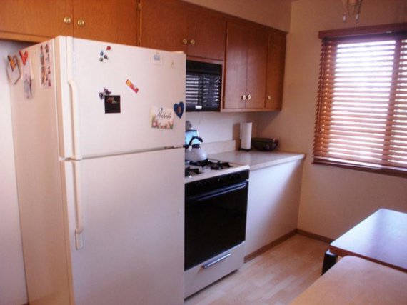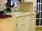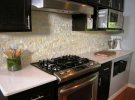 Обставляючи маленьку кухню, варто відмовитися від важких, габаритних меблів на користь більш компактних і максимально містких. Щоб не марнувати простір і при цьому візуально не звузити його ще більше, замість класичних підвісних шафок можна встановити відкриті стелажі й підвісні полички, які доходитимуть до самої стелі. Якщо брати шафки, то вибір бажано зупинити на моделях зі скляними дверцятами.