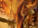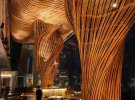 Також пофарбований золотом ротанг приховує різноманітні труби, кондиціонування повітря та інші комунікації. Ці скульптурні форми виглядають надзвичайно ефектно, ніби золоті.