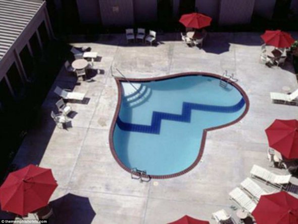 Басейн-розбите серце. Поплавати в такому пропонує американський готель Heartbreak Elvis Presley, який отримав свою назву на честь однієї з найпопулярніших пісень короля рок-н-ролу Елвіса Преслі. Відповідно й форму басейну теж обрали символічну.