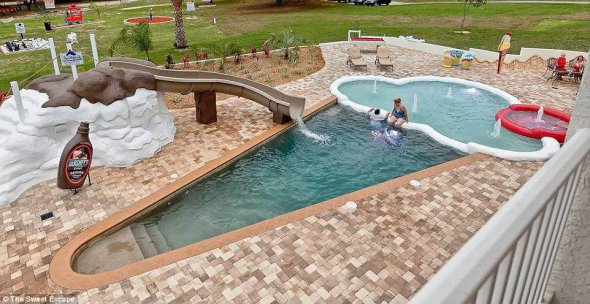 Басейн-морозиво. Належить він американському будинку відпочинку під назвою Sweet Escape. Саме таку форму басейну обрали не без підстав — вона повністю вписується в "солодку" тематику цього місця. Автори проекту продумали все до дрібниць. Так, на "морозиві" зробили навіть "вишеньку" — дитячий басейн, дно і борти якого вимощені з червоного матеріалу.
