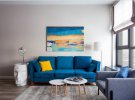 У вітальні краще ставити диван у центрі, а не під стінами. Це зручно не тільки в повсякденному житті, але і для прийому гостей, рідних.