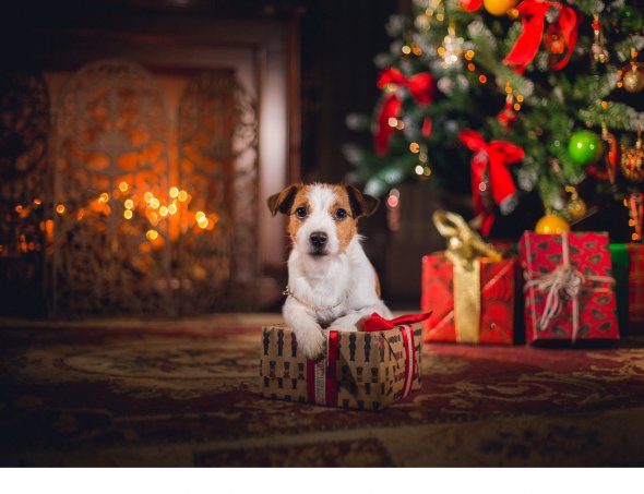Собака – тварина весела, тому можна дозволити що завгодно у прикрашанні новорічної красуні - навіть повісити краватки, шкарпетки і рукавички.