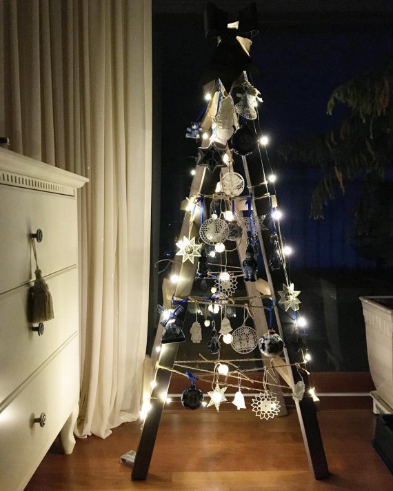 На Новий рік не обов'язково прикрашати звичну ялинку. Зараз модно замінити її на драбину. Здається, що ця ідея не найкраща, але спочатку потрібно подивися приклади, як це робили інші. Зараз такі прикраси є трендами в Instagram.