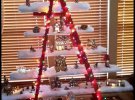 У цьому році оздоблення робили у золотих кольорах. На гілках ялиці розмістили блискучі соснові шишки і зірки, а на верхівці - ангела. Серед інших прикрас замку - величезні банти з червоного оксамиту і мерехтливе підсвічування.