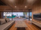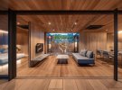 На порослому лісом березі спорудили комфортабельний будинок. Спроектували його як екологічно дружелюбне житло. За основні матеріали взяли деревину, бамбук, камінь і сталь. Дах оснастили сонячними панелями.
