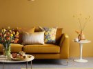Для створення осіннього настрою використовують в якості базового для стін золотистий, приглушений жовтий, колір охри, бежевий, оливковий або теракотовий. У цих відтінках можна прикрасити будь-який текстиль: подушки в вітальню, штори у спальню або рушники у ванну кімнату. У поєднанні з темним інтер'єром такі акценти створюють стриману, інтимну атмосферу.