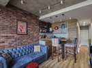 Урізноманітнити інтер'єр можна за допомогою геометричних малюнків, елементів абстракції або модних принтів. Дзеркала і глянцеві поверхні дозволять візуально розширити приміщення, а оригінальні ширми або перегородки розділять вітальню на зони.