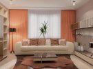 Вітальня у персиковому кольорі створює теплу атмосферу затишку та відпочинку. Відтінок добре працює як в елегантному інтер'єрі, так і в менш формальній, повсякденному, де підкреслюється комфорт.