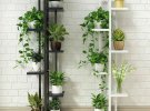 Пишні рослини, розташовані на одній стійці, на фоні світлої стіни, змушують інтер'єр виглядати по-новому.