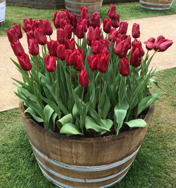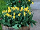 Тюльпани гармонійно виглядають з іншими нижчими квітами на клумбі або окремо по горщиках чи дерев'яних міні-діжках.