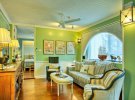 До позитивних рис зеленої кольорової палітри можна віднести її благотворний вплив на нервову систему людини і здатність нівелювати тривожність і напругу. Ви забудете про перепади настрою і бажання вступити в конфлікт. А найголовніше - зелений прекрасно виглядає в оформленні вітальні будь-якого розміру.