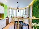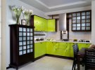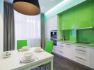 Стильно виглядає інтер'єр кухн в салатових тонах. Він викликає почуття впевненості, мотивує і спонукає до спілкування. Він прекрасно впливати на загальний психічний стан людини даруючи гармонію і душевну рівновагу. Можна зробити яскраві акценти, які пізніше можна буде замінити.