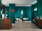 Зелений колір розкривається з хорошою дозою натхнення для кімнати з характером. Як нагадування про природу, зелений також є синонімом благополуччя і спокою. Він поєднується з плиткою тих же кольорів для створення модного декоративного ансамблю.