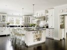 Ідеальним підлоговим покриттям для білої кухні є дерев'яне. Воно може бути як темних, так і світлих відтінків. Що стосується інших кольорів, у комбінації з білим безпрограшно виглядає чорний.