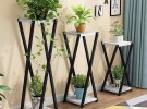 Якщо розмістити три окремі стійки різної висоти поруч, то вийде вражаючий східчастий ефект. Від широкої внизу до все більш вузької нагорі. Такі конструкції ідеально вписуються в кут приміщення, щоб створити там двоярусну стіну з рослин.