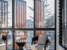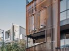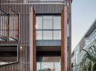 Фасад будинку облицьовано дерев'яними дошками за принципом жалюзі. Вони захищають помешкання від сонця й забезпечують приватність, дозволяючи при цьому мешканцям бачити все, що відбувається назовні.
