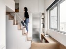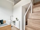 Висота стелі в приміщенні сягала 3,4 метри. Це дозволило зробити в ньому мансардний поверх, на якому вирішено було розмістити спальню. Під сходами, що ведуть нагору, встановили холодильник. У стіні під самою стелею розташували вбудовані шафки. Дотягнутися до них можна ставши на сходи, пише дизайнерське видання Dezeen.